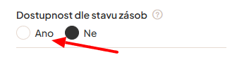3. Zaškrtněte funkci Dostupnost dle stavu zásob na Ano.