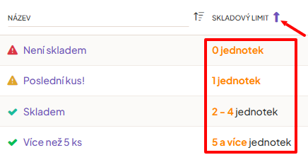 4. Do kolonky Skladový limit napište hodnotu 5.