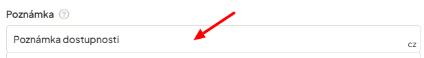 U jednotlivých dostupností lze přidat poznámku, která se zobrazí na e-shopu. Může poskytnout zákazníkům dodatečné informace pro lepší orientaci ohledně dostupnosti produktu.