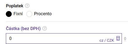 Poplatek za platbu lze nastavit jako: