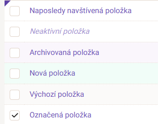- Nová položka - Bude označená, dokud se neprokliknete na detail.