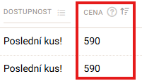 Ceny se ve sloupcích standardně zobrazují pro výchozí měnu. Pokud pro ni nejsou vyplněny, pak se v daném sloupci zobrazí prázdná hodnota.