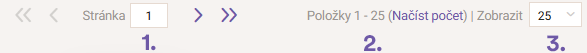 - Zobrazení aktuální stránky v seznamu. Možnost přejít na první, předchozí, následující a poslední stránku.