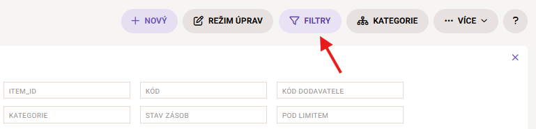 Nad vybranými seznamy položek se navíc zobrazuje tlačítko filtry pro další podrobné filtrování.