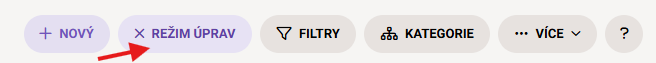 - Pro zapnutí režimu úprav klikněte na tlačítko Režim úprav.