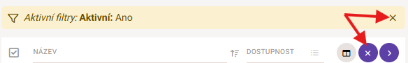 Použité filtry zrušíte kliknutím na tlačítko s křížkem.