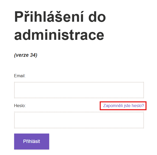 - Na přihlašovací stránce do administrace klikněte na Zapomněli jste heslo?