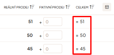 2. Do sloupce Fiktivní prodej vložte počet, o který se reálný prodej zvýší.