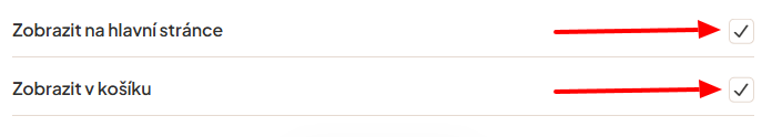 Dole na stránce si poté můžete zvolit, zda-li chcete zobrazovat sekci na hlavní stránce a v košíku.