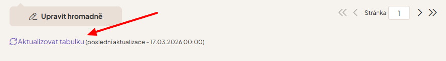 Aktualizace prodejů probíhá automaticky vždy jednou denně po půlnoci (z důvodu výpočetní náročnosti). Pokud chcete zjistit aktuální stav už teď, je třeba manuálně kliknout na odkaz  Aktualizovat tabulku, nacházející se pod tabulkou nejprodávanějších.